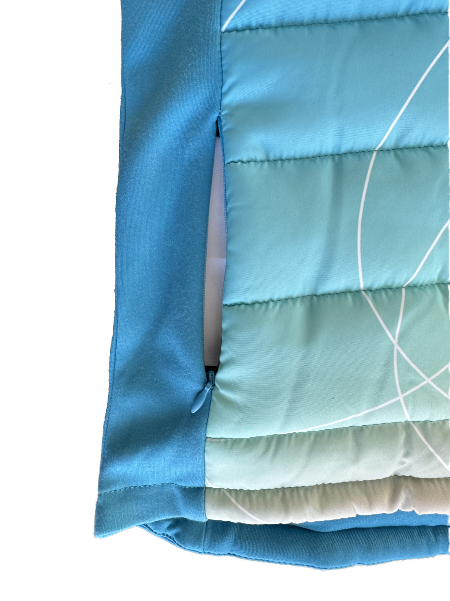 Die Jacke hat eine hochwertige Fütterung, die schön warm hält und trotzdem ganz leicht ist. Der Schnitt ist für den Eiskunstlauf optimiert und seitlich wurde flexibler dehnbarer Stoff eingesetzt, so dass man sich trotz Volumen super bewegen kann. Links und rechts hat es zwei praktische Jackentaschen mit feinem Reissverschluss für Nastücher, Schlüssel und weitere Notwendigkeiten. Die Reissverschlüsse sind von YKK, so dass sie lange halten. Auch bei der Herstellung der Jacke wurde auf gute Verarbeitung Wert gelegt. Lesen Sie hier die Entwicklungsgeschichte unserer Eiskunstlauf Wärmejacke, die vom EKL und Couture Kids entwickelt wurde.